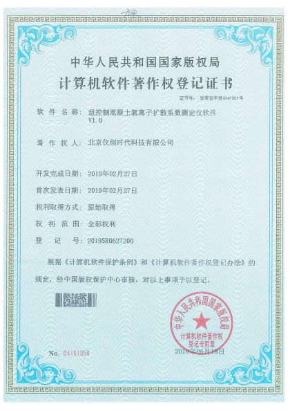 计算机软件著作权——组控制混凝土氯离子扩散系数测定仪软件