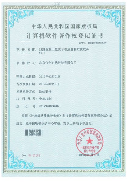 计算机软件著作权——12路混凝土氯离子电通量测定仪软件