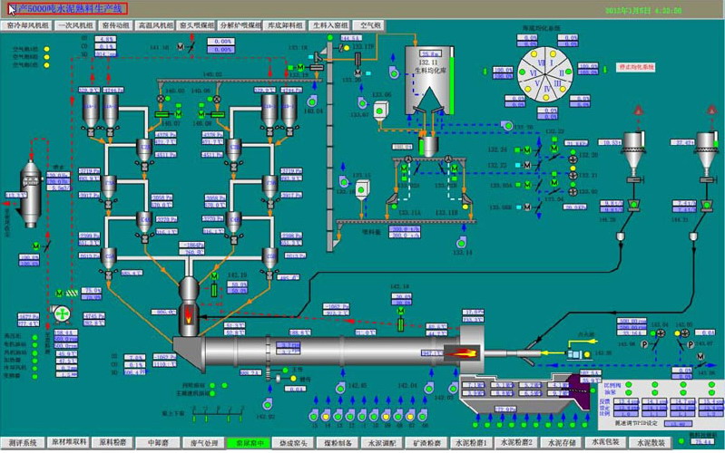 水泥生产过程仿真系统模拟现代化kt/d新型干法水泥熟料生产线,仿真对象包括: